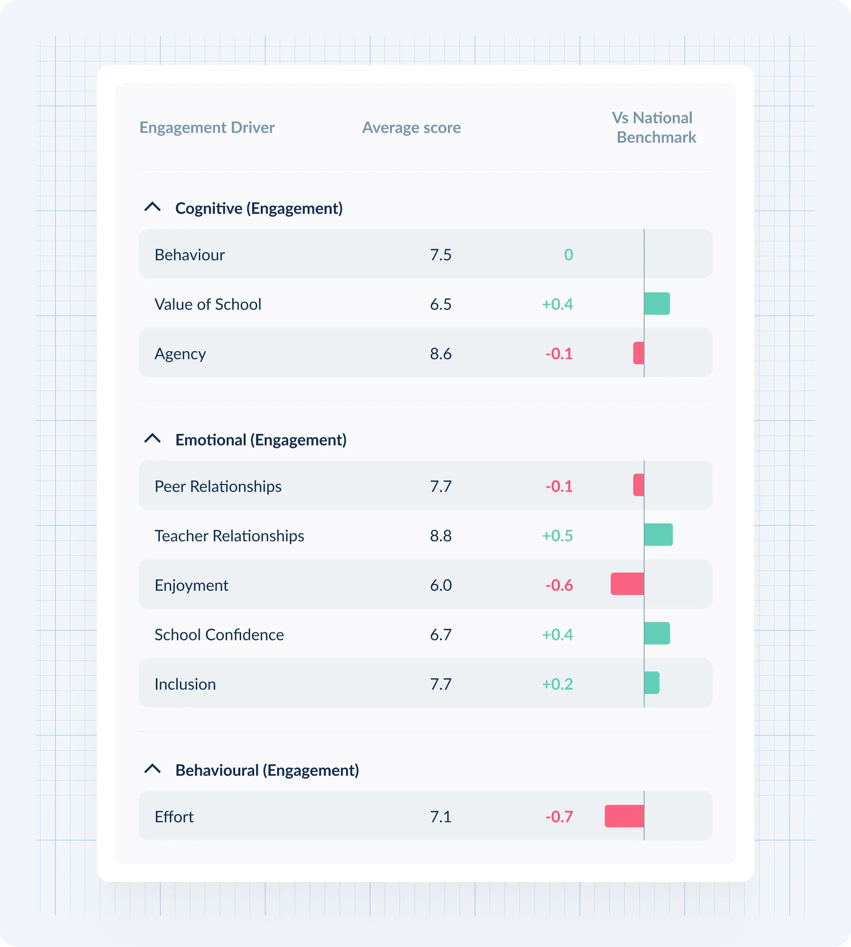 Yes. TEP’s contextualised benchmarks allow comparison with similar schools, helping leaders identify where strategies are most effective and where additional focus is needed.