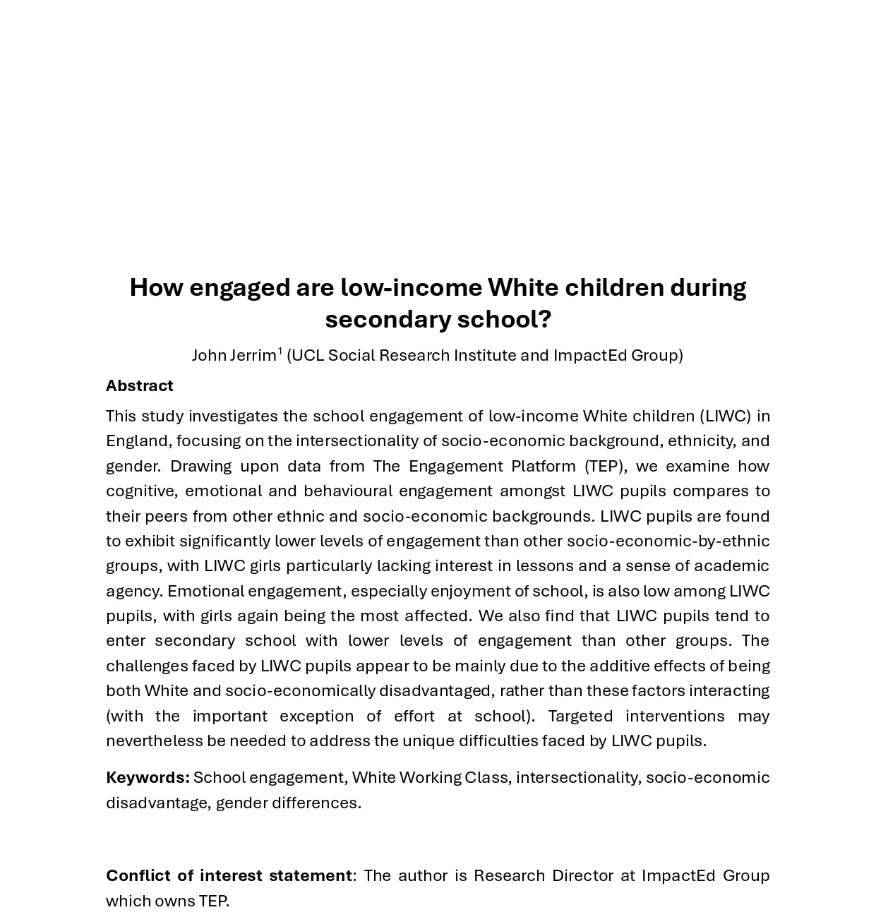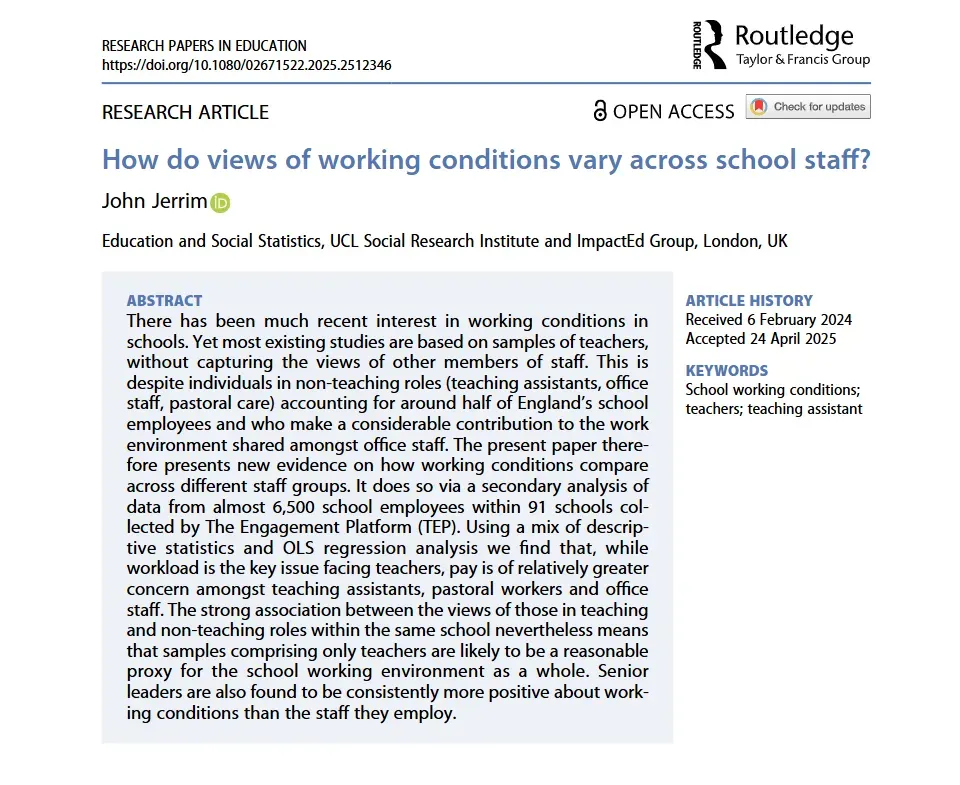 TEP data contributes to a growing body of research on the state of education, led by Professor John Jerrim and Dr Lauren Bellaera.